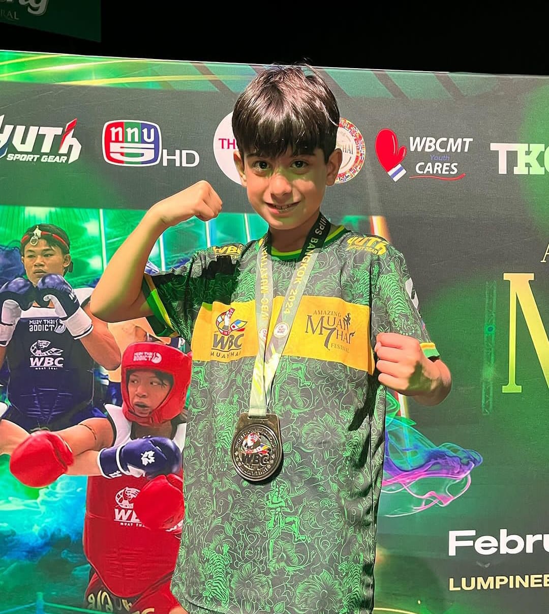 Alessandro Serra, alunno della classe 4^A del plesso di via Vico, vince la medaglia d'oro ai mondiali di Muay-Thai che si sono svolti in Thailandia il mese scorso.