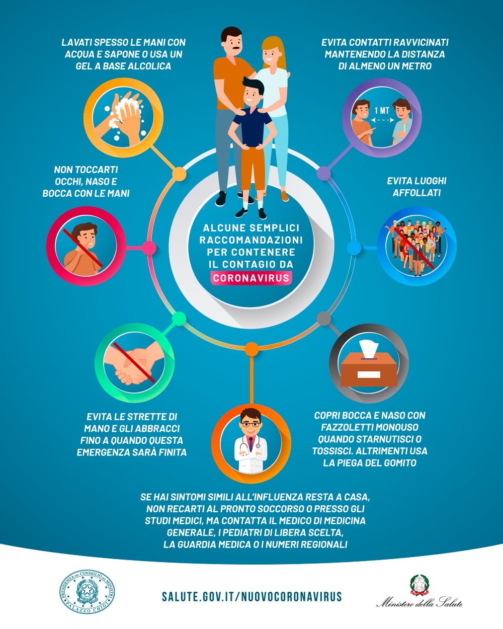 - Il numero nazionale Ministero della Salute 1500 (attivo tutti i giorni 24 ore)